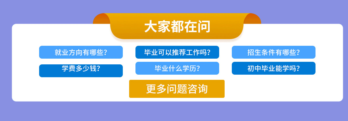 不知道是否适合学? I don't know if it's suitable for learning ? 让老师为您解答 毕业后可以拿什么学历? What degree can I get after graduation? 让老师为您解答 学完后可进哪些企业? What enterprises can I enter after ? 让老师为您解答 学成后薪资有多少? What is the salary after completion? 让老师为您解答 学费多少钱? How much is the tuition? 让老师为您解答 不知道选择什么专业好? I don't know what major to choose ? 让老师为您解答